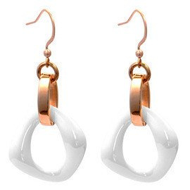 Złote Kolczyki z Białą Ceramiką Stal Szlachetna