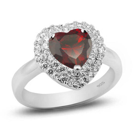Pierścionek Srebrny Wysadzany Czerwonym Sercem