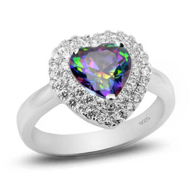 Pierścionek Srebrny Wysadzany Sercem Multikolor