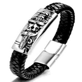 Bransoletka Czarna Skóra Naturalna Motyw Czaszki