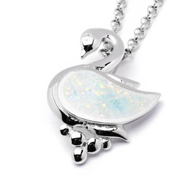 Srebrna Zawieszka Łabędź z Białym Opalem