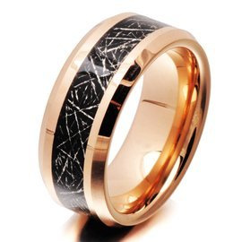 Złota Obrączka z Wolframu z Czarną Aplikacją