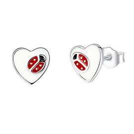 Srebrne Kolczyki Serce z Biedronką