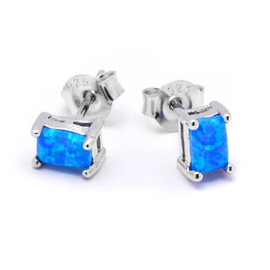 Srebrne Kolczyki Prostokąty z Niebieskim Opalem