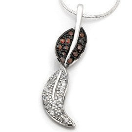 Zawieszka Srebrna Liść z Czerwonymi Cyrkoniami