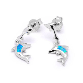 Srebrne Kolczyki Delofinki z Niebieskim Opalem