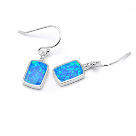 Srebrne Kolczyki Prostokątne z Niebieskim Opalem