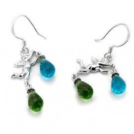 Kolczyki Srebrne Aniołki Zielone i Niebieskie