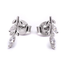 Srebrne Kolczyki Liście Wysadzane Cyrkoniami