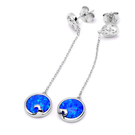 Srebrne Kolczyki na Łańcuszku z Opalem