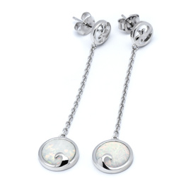 Srebrne Kolczyki na Łańcuszku z Białym Opalem