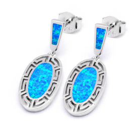 Srebrne Kolczyki Owalne z Niebieskim Opalem