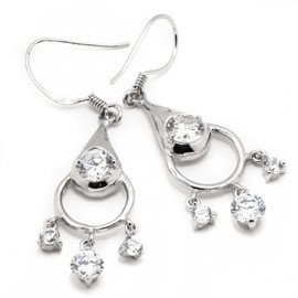 Kolczyki Srebrne Wiszące z Diamentowymi Cyrkoniami