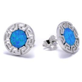 Srebrne Okragłe Kolczyki z Niebieskim Opalem