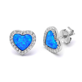 Srebrne Kolczyki Serduszka z Niebieskim Opalem