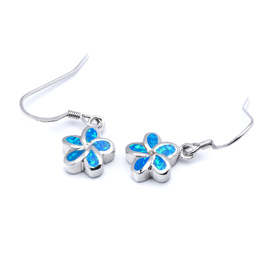 Srebrne Kolczyki Kwiatuszki z Niebieskim Opalem