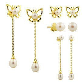 Srebrne Kolczyki Motylki z Perłami Trzy w Jednym