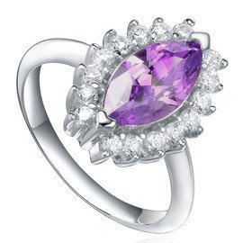 Pierścionek Srebrny z Fioletową Owalną Cyrkonią