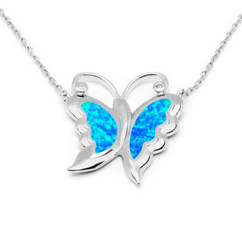 Srebrny Naszyjnik Motyl z Niebieskim Opalem