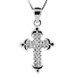 Zawieszka Srebrna Krzyżyk Białe Cyrkonie