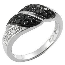 Srebrny Pierścionek Biało Czarne Cyrkonie