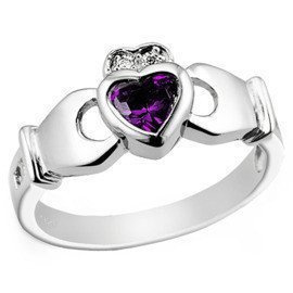 Pierścionek Srebrny Fioletowe Serce w Koronie