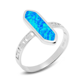 Pierścionek Srebrny z Niebieskim Opalem Wzór Grecki