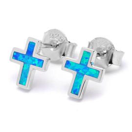 Srebrne Kolczyki Krzyżyki z Niebieskim Opalem