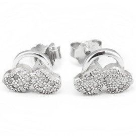 Kolczyki Srebrne Dwa Serca z Mikro Cyrkoniami