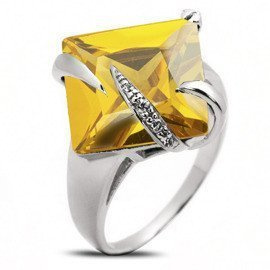 Pierścionek Srebrny z Dużym Żółtym Kamieniem
