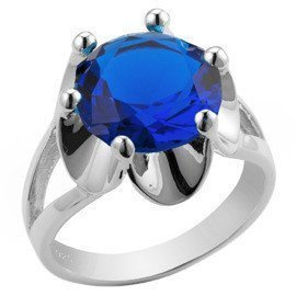 Pierścionek Srebrny z Dużą Szafirową Cyrkonią