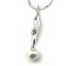 Zawieszka Srebrna z Białą Perłą i Cyrkoniami 5836